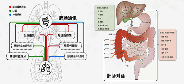 腸道和其內部菌群所構成的“腸道微生態系統”是人體最大的“免疫器官”,人體70%的免疫力來自于腸道。腸道同時還可以通過“肺腸軸”、“腦腸軸”、“肝腸對話”等機制對